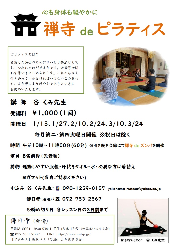 ◆禅寺deピラティス 2月10日、24日(火) 午前10〜11時