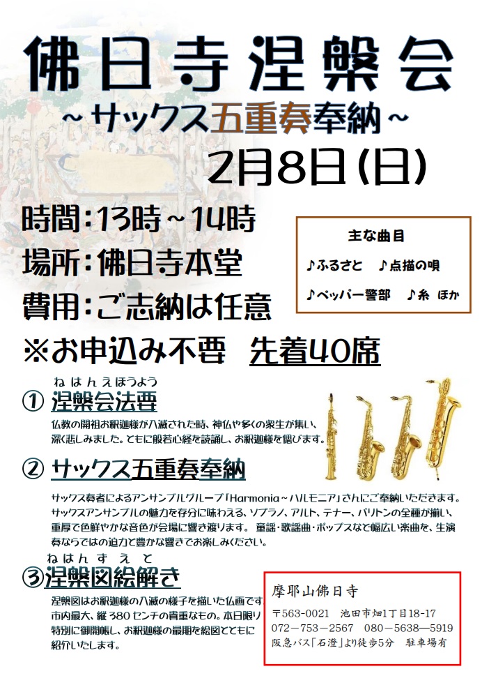 ◆涅槃会 2月8日(日) 午後1時〜2時